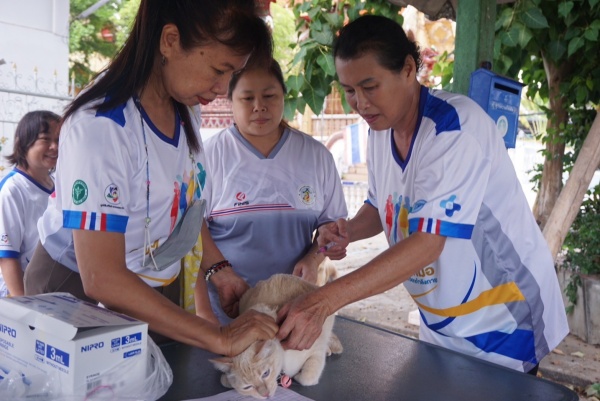 วันที่ 15 พฤษภาคม 2567 เวลา 9.00 น. เทศบาลตำบลตลาดใหญ่ นำโดย นายอาทิตย์ ยอดคำลือ นายกเทศมนตรีตำบลตลาดใหญ่ พร้อมทั้งคณะผู้บริหาร หัวหน้าสำนักปลัด ข้าราชการ อาสาสมัครสาธารณสุขประจำหมู่บ้าน และเจ้าหน้าที่ที่เกี่ยวข้อง จัดหน่วยบริการเคลื่อนที่ให้บริการฉีดวัคซีนป้องกันโรคพิษสุนัขบ้าให้กับสุนัขและแมว ในพื้นที่ตำบลตลาดใหญ่ เพื่อให้สุนัขและแมวได้รับวัคซีนป้องกันโรคพิษสุนัขบ้า ซึ่งเป็นการป้องกันปัญหาโรคพิษสุนัขบ้าในพื้นที่ตำบลตลาดใหญ่ รวมทั้งให้ประชาชนในพื้นที่ มีความรู้ความเข้าใจเรื่องโรคพิษสุนัขบ้า สามารถป้องกันโรคพิษสุนัขบ้าในสัตว์เลี้ยงและดูแลตัวเองให้ปลอดภัยจากโรคได้ โดยออกหน่วยบริการเคลื่อนที่ฉีดวัคซีนป้องกันโรคพิษสุนัขบ้าให้กับสุนัและแมว โดยเริ่มให้บริการตั้งแต่เวลา 9.00 11.00 น. และกรณีที่ประชาชนไม่สามารถนำสัตว์เลี้ยงมารับบริการตามกำหนดการ เจ้าของสัตว์เลี้ยงสามารถมารับบริการฉีดวัคซีนป้องกันโรคพิษสุนัขบ้าในรายที่ตกค้าง ได้ที่เทศบาลตำบลตลาดใหญ่ และให้เจ้าของสัตว์เลี้ยงนำบัตรประจำตัวประชาชนมายืนยันเพื่อรับบริการ ทั้งนี้ โรคพิษสุนัขบ้าเป็นโรคที่สามารถควบคุมป้องกันได้ โดยการป้องกันที่ดีคือการระวังไม่ให้ถูกสัตว์กัด หรือถูกน้ำลายของสัตว์ รวมทั้งการนำสัตว์เลี้ยงที่มีอายุครบ 2 เดือนขึ้นไปมารับบริการ และควรได้รับการฉีดวัคซีนเป็นประจำทุกปีอย่างต่อเนื่อง เพื่อป้องกันโรคที่เกิดจากสัตว์สู่คน ตลอดจนเป็นการควบคุมการระบาดของโรคพิษสุนัขบ้าได้อย่างมีประสิทธิภาพ