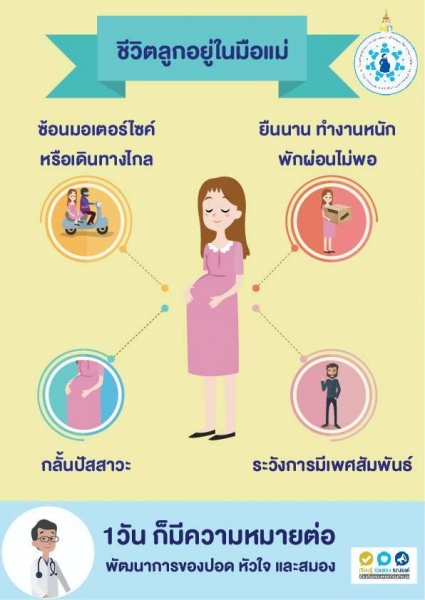 ประชาสัมพันธ์ โครงการสร้างเสริมสุขภาพเชิงรุก เพื่อลดภาวะคลอดก่อนกำหนด ประชาสัมพันธ์รณรงค์ป้องกันการคลอดก่อนกำหนด ภาวะคลอดก่อนกำหนดคือภาวะที่คลอดโดยมีอายุครรภ์ น้อยกว่า 37 สัปดาห์ เป็นสาเหตุของการเสียชีวิตและความพิการระยะยาวของทารกที่พบบ่อย ภาวะคลอดก่อนกำหนดอาจเกิดขึ้นได้กับหญิงตั้งครรภ์ทุกคน \"หากหญิงตั้งครรภ์ปรับวิธีการทำงานและการใช้ชีวิตได้เหมาะสมก็สามารถป้องกันภาวะคลอดก่อนกำหนดได้\" หากมีสัญญาณเตือนก่อนอายุครรภ์ 37 สัปดาห์ ให้เดินทางมาพบหมอทันที ไม่ควรรอให้ถึงวันนัดฝากครรภ์