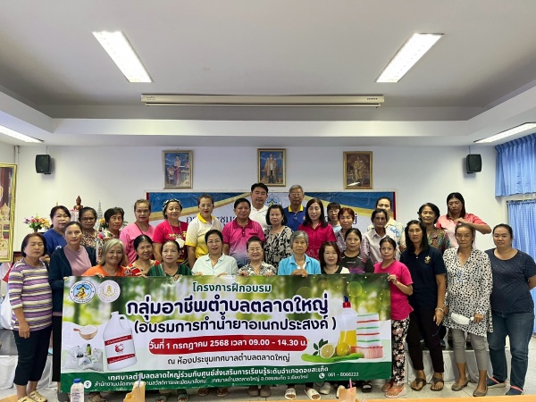 วันอังคาร ที่ 1 กรกฎาคม 2568 เทศบาลตำบลตลาดใหญ่ร่วมกับศูนย์ส่งเสริมการเรียนรู้ระดับอำเภอดอยสะเก็ด จัดอบรมกลุ่มอาชีพตำบลตลาดใหญ่ อบรมการทำน้ำอเนกประสงค์ เพื่อให้เกิดทักษะในการประกอบอาชีพ สามารถนำทักษะไปประกอบอาชีพเพื่อเลี้ยงตนเองและครอบครัวได้ รวมถึงสามารถนำองค์ความรู้ไปต่อยอด เพื่อพัฒนาผลิตภัณฑ์ให้มีคุณภาพ ซึ่งมีผู้เข้าร่วมโครงการจำนวน 30 ท่าน ณ ห้องประชุมเทศบาลตำบลตลาดใหญ่