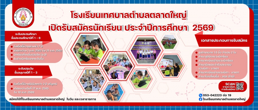 โรงเรียนเทศบาลตำบลตลาดใหญ่ รับสมัครนักเรียน ประจำปีการศึกษา 2569