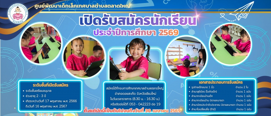 ศูนย์พัฒนาเด็กเล็กเทศบาลตำบลตลาดใหญ่ รับสมัครนักเรียน ประจำปีการศึกษา 2569