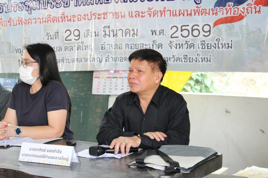 วันอาทิตย์ที่ 29 มีนาคม 2569 เวลา 09.30 น. เทศบาลตำบลตลาดใหญ่ นำโดยท่านนายกอาทิตย์ ยอดคำลือ นายกเทศมนตรีตำบลตลาดใหญ่ พร้อมด้วยคณะผู้บริหาร สมาชิกสภาฯ ผู้ใหญ่บ้าน หัวหน้าส่วนราชการและเจ้าหน้าที่ ดำเนินโครงการจัดเวทีประชาคมตำบลและหมู่บ้าน เพื่อส่งเสริมการมีส่วนร่วมในการจัดทำแผนพัฒนาท้องถิ่น โดยมีวัตถุประสงค์ เพื่อรับฟังความคิดเห็น ปัญหาความเดือนร้อน ความต้องการของประชาชนตำบลตลาดใหญ่ ใช้เป็นแนวทางในการพัฒนาท้องถิ่นของเทศบาลตำบลตลาดใหญ่ และออกหน่วยให้บริการประชาชนในพื้นที่เชิงรุก ณ ศาลาอเนกประสงค์หมู่บ้าน หมู่ที่ 5 บ้านแม่จ้องเหนือ