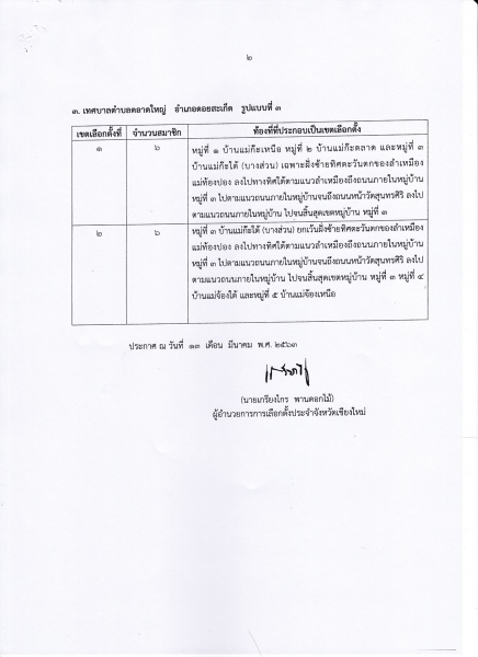 เทศบาลตำบลตลาดใหญ่ ขอประชาสัมพันธ์ให้ประชาชนทราบ หากประชาชนในเขตเลือกตั้งผู้ใดประสงค์จะแสดงความคิดเห็นและข้อเสนอแนะ ให้จัดทำเป็นหนังสือส่งให้ผู้อำนายการการเลือกตั้งประจำจังหวัดเชียงใหม่ (สำนักงานคณะกรรมการการเลือกตั้งประจำจังหวัดเชียงใหม่ ศูนย์ราชการจังหวัดเชียงใหม่ ถนนโชตนา ตำบลช้างเผือก อำเภอเมืองเชียงใหม่ จังหวัดเชียงใหม่ 50300) ภายในวันที่ 22 มีนาคม 2563 เพื่อจะได้นำเสนอคณะกรรมการการแบ่งเขตเลือกตั้ง และคณะกรรมการการเลือกตั้ง พิจารณาให้ความเห็นชอบต่อไป