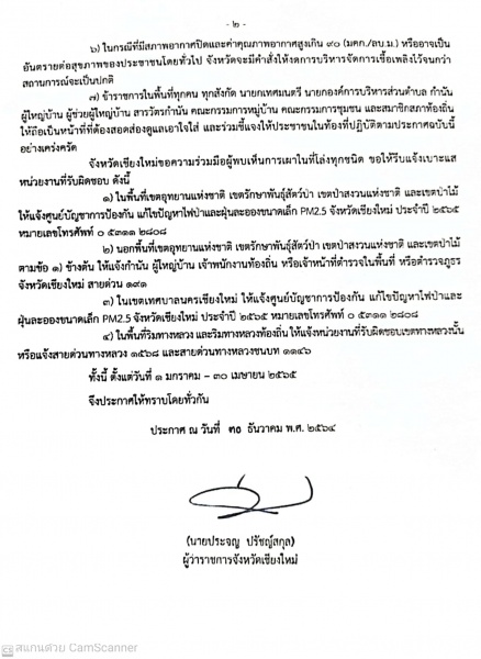 จังหวัดเชียงใหม่ ประกาศห้ามเผาในที่โล่งทุกชนิด ตั้งแต่ 1 มกราคม 2565 - 30 เมษายน 2565 ในเขตพื้นที่ชุมชน หมู่บ้าน ตำบล อำเภอ ในท้องที่จังหวัดเชียงใหม่