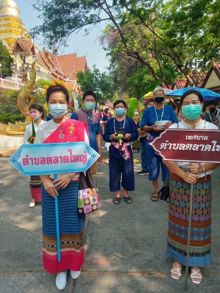 วันอาทิตย์ ที่ 17 เมษายน 2565 นายอาทิตย์ ยอดคำลือ นายกเทศมนตรีเทศบาลตำบลตลาดใหญ่ พร้อมด้วย คณะผู้บริหาร สมาชิกสภาเทศบาล เข้าร่วมงาน สืบอีต สานฮอย ป๋าเวณีปี๋ใหม่เมือง อำเภอดอยสะเก็ด ประจำปี 2565 ณ ลานน้ำพุวัดพระธาตุดอยสะเก็ด /\\โดยมีพระเดชพระคุณพระราชโพธิวรคุณ ดร.เมธาจารย์ เจ้าคณะอำเภอดอยสะเก็ด เจ้าอาวาสวัด พระธาตุดอยสะเก็ด พระอารามหลวง ต้อนรับขบวนแห่สงกรานต์จากชาวบ้าน *นำโดยคุณแม่อิ่นแก้ว ชัยศรี ประธานผู้สูงอายุอำเภอดอยสะเก็ด ที่ปรึกษา ผู้ทรงคุณวุฒิ นำหน่วยงานส่วนราชการองค์การปกครองส่วนท้องถิ่น ท้องที่ จำนวน 14 ตำบล 112 หมู่บ้าน หน่วยงานภาคเอกชน แห่เครื่องสักการะและศิลปวัฒนธรรมล้านนา ตามตฮอยป้าเวณีปีใหม่เมือง เริ่มเดินขบวนจากอาคารแม่วรรณี เข้าสู่บริวเณงาน (ลานน้ำพุ) ในวัด *การจัดงานครั้งนี้ มีการประกวดขบวนแห่เครื่องสักการะ และแสดงภูมิปัญญาท้องถิ่น เพื่อแสดงให้เห็ยถึงจารีตประเพณีดั้งเดิม และวิถีวัฒนธรรมของชุมชนที่หลากหลาย มีการสาธิตภูมิปัญญาท้องถิ่น อาทิ อาหารพื้นบ้าน งานประดิษฐ์ใบตอง งานจักสาน การตัดตุง, การทำต้นผึ้งต้นดอกต้นเทียน ฯลฯ มีการแสดงศิลปวัฒนธรรมพื้นบ้าน อาทิ การฟ้อนรำ การขับร้องจ๊อย ซอ ค่าวฮ่าการแสดง กลองมองเซิง กลองสะบัดชัย และการประกวดแข่งขันก่อเจดีย์ทราย การสานราชวัตร และการปั่นปอนพื้นเมือง เป็นต้น ก่อนปิดงานได้ประกอบพิธีคารวะดำหัวพระสังฆาธิการ และรดน้ำดำหัวผู้สูงอายุ อำเภอดอยสะเก็ด >ซึ่งผลการประกวดเดินขบวน เทศบาลตำบลตลาดใหญ่ได้รับรางวัล ชนะเลิศ อันดับที่ 1< ในนามของเทศบาลตำบลตลาดใหญ่ขอขอบคุณทุกๆท่านที่มีส่วนร่วมในการจัดขบวนรดน้ำดำหัว งาน สืบฮีต สานฮอย ป๋าเวณีปีใหม่เมือง อำเภอดอยสะเก็ด ประจำปี 2565 นายอาทิตย์ ยอดคำลือ นายกเทศมนตรีตำบลตลาดใหญ่