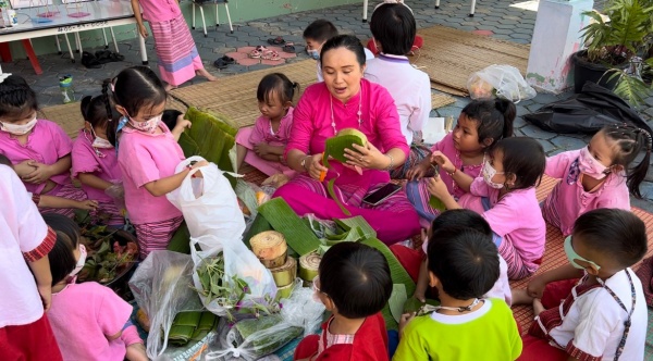 วันจันทร์ ที่ 8 พฤศจิกายน 2565 โรงเรียนอนุบาลเทศบาลตำบลตลาดใหญ่ ได้จัดทำโครงการส่งเสริมการเรียนรู้ ภูมิปัญญาท้องถิ่นไทย ตามโครงการกิจกรรมพัฒนาคุณภาพผู้เรียน โดยมี นาย อาทิตย์ ยอดคำลือ นายกเทศมนตรีตำบลตลาดใหญ่ ได้เข้าเยี่ยมชมเด็กๆ และร่วมฟ้อนรำวงลอยกระทง ต่อมาคณะครูชั้นอนุบาล 1-3 และศูนย์เด็กเล็ก พร้อมด้วยคณะครูพี่เลี้ยง ร่วมกันประดิษฐ์กระทงจากใบตอง โดยใช้วัสดุธรรมชาติที่ช่วยย่อยสลายง่าย และไม่เป็นขยะต่อแหล่งน้ำและรักษาสิ่งแวดล้อม ทั้งนี้เพื่อสอนให้เด็กเล็กอายุ 2-5 ปี ช่วยกันประดิษฐ์กระทงขึ้นเอง เพื่อเตรียมกระทงที่พร้อมจะนำไปลอยกับพ่อแม่ ซึ่งทางผู้ปกครองได้ช่วยบุตรหลานเตรียมอุปกรณ์กันมาจากบ้าน อาทิ ต้นกล้วย ใบตอง ดอกไม้สดที่หาได้ใกล้บ้านนานาชนิด ธูปเทียน ซึ่งเป็นวัตถุดิบจากธรรมชาติ เพื่อช่วยกันรักษาสิ่งแวดล้อม และให้เด็กนักเรียนได้เรียนรู้ประวัติความเป็นมาถึงความสำคัญของประเพณีวันลอยกระทงของไทยที่ควรรักษาไว้ พร้อมร่วมกันอนุรักษ์ขนบธรรมเนียมประเพณีที่ดีงามไว้สืบต่อให้ลูกหลานรุ่นหลังได้เผยแพร่สืบสานวัฒนธรรมประเพณีที่ดีงามนี้สืบไป