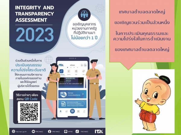 ทศบาลตำบลตลาดใหญ่ ขอเชิญชวนทุกท่านร่วมประเมิน การประเมินคุณธรรมและความโปร่งใสในการดำเนินงานของหน่วยงานภาครัฐ Integrity and Transparency Assessment ประจำปีงบประมาณ พ.ศ. 2566 (IIT)