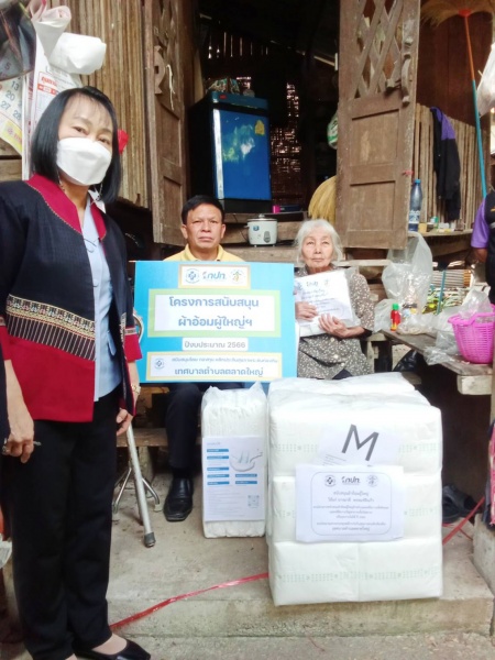 มอบผ้าอ้อมให้แก่ประชาชนในตำบลตลาดใหญ่ที่มีภาวะพึ่งพิงและบุคคลที่มีภาวะปัญหาการกลั้นปัสสาวะหรือุจจาระไม่ได้