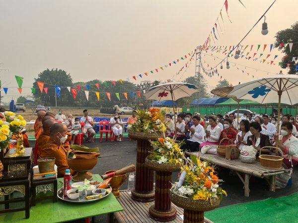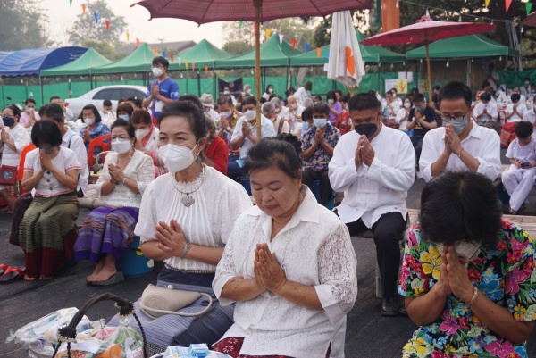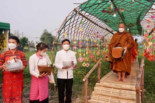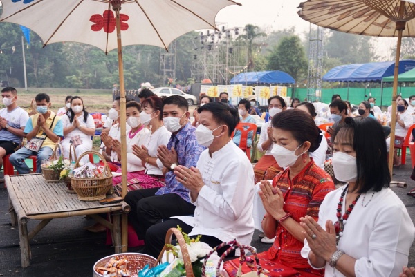 งานพิธีทำบุญตักบาตรข้าวสารอาหารแห้ง เนื่องในการจัดงานวันแตงไทยและของดีตำบลตลาดใหญ่