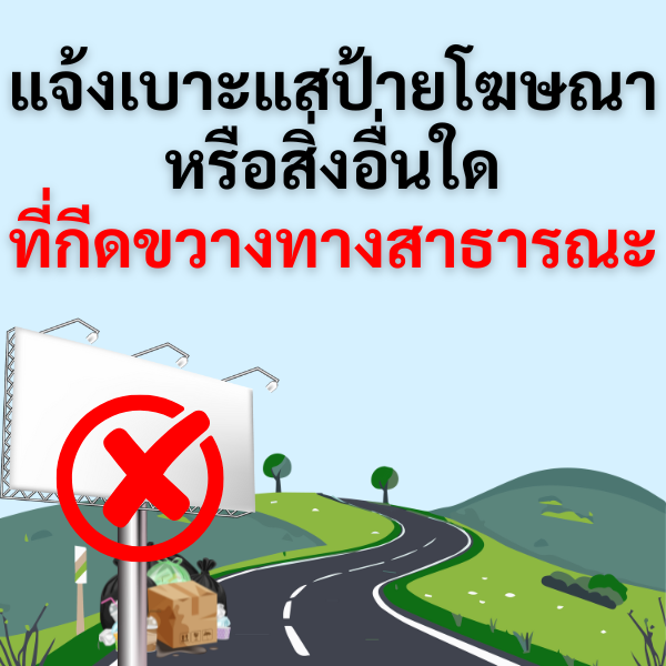 แจ้งเบาะแสป้ายโฆษณาหรือสิ่งอื่นใดที่กีดขวางทางสาธารณะ