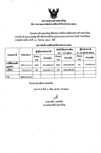 ประกาศเทศบาลตำบลตลาดใหญ่ เรื่อง รายงานผลการจัดเก็บรายได้ประจำปี งบประมาณ 2568 ณ วันที่ 30 กันยายน 2568 <16/10/68>