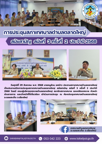 การประชุมสภาเทศบาลตำบลตลาดใหญ่ สมัยสามัญ สมัยที่ 3 ครั้งที่ 2 ประจำปี พ.ศ. 2568 <29/08/68>