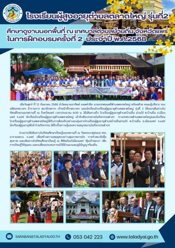 กิจกรรม โรงเรียนผู้สูงอายุตำบลตลาดใหญ่ รุ่นที่2 ศึกษาดูงานนอกพื้นที่ ณ จังหวัดแพร่ ในฝึกอบรมครั้งที่ 2 ประจำปี พ.ศ.2568 <12/09/68>