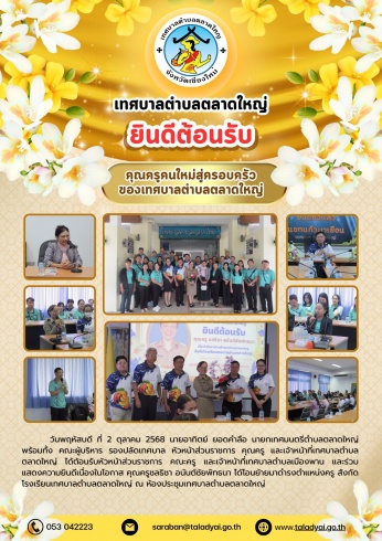 ต้อนรับคุณครูคนใหม่สู่ครอบครัวเทศบาลตำบลตลาดใหญ่ <02/10/68>
