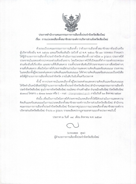 ประชาสัมพันธ์ เรื่อง การแบ่งเขตเลือกตั้งสมาชิกสภาองค์การบริหารส่วนจังหวัดเชียงใหม่