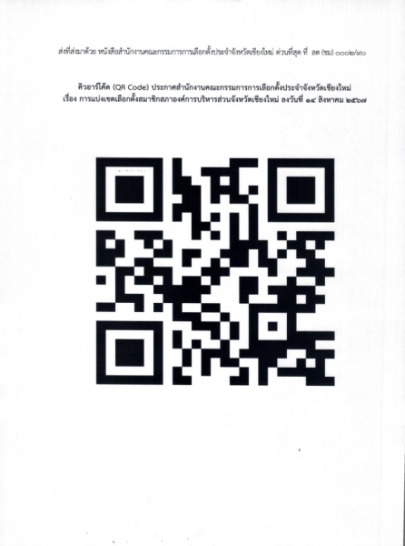 ประกาศสำนักงานคณะกรรมการการเลือกตั้งประจำจังหวัดเชียงใหม่ เรื่อง การแบ่งเขตสมาชิกสภาองค์การบริหารส่วนจังหวัดเชียงใหม่ รายละเอียดเพิ่มเติมตามคิวอาร์โค้ดด้านล่างนี้
