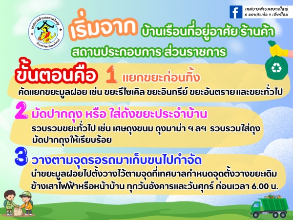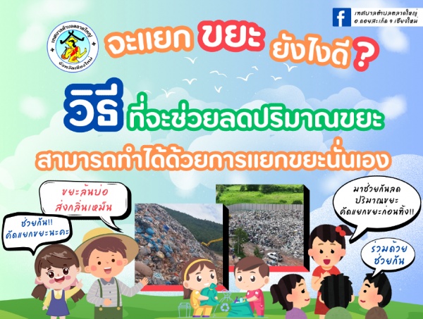 ประชาสัมพันธ์ เรื่อง ขอความร่วมมือประชาชนในตำบลตลาดใหญ่ทุกท่าน คัดแยกขยะก่อนทิ้ง เพื่อลดปริมาณขยะมูลฝอย