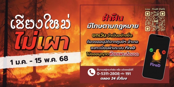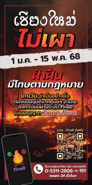 เชียงใหม่ ไม่เผา ตั้งแต่วันที่ 1 มกราคม 15 พฤษภาคม 2568 ฝ่าฝืนมีโทษตามกฎหมาย