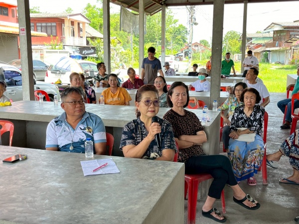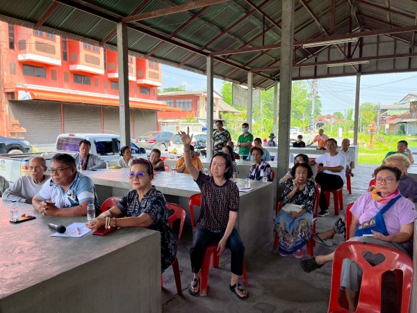 การประชุมรับฟังความคิดเห็นและชี้แจงแนวปฏิบัติการจัดสร้างถนนบนที่ดินบริจาคในตลาดธนสารประสงค์ราษฎ์ หมู่ที่ 2 ตำบลตลาดใหญ่ อำเภอดอยสะเก็ด เชียงใหม่
