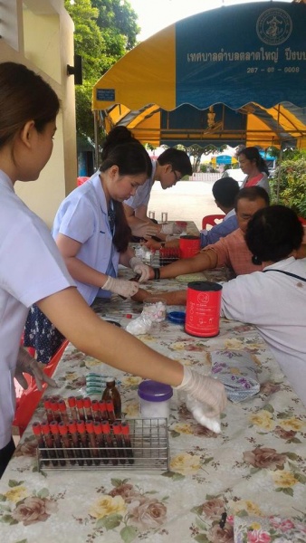 ผส.ดร.ขนิษฐา พันธุรี และคณะเจ้าหน้าที่ทำการเจาะเลือดและให้ความรู้แก่ประชาชนภาคการเกษตร ภาคอุตสาหกรรม และประชาชนทั่วไป ในวันพฤหัสบดีที่ 21 กันยายน 2560
