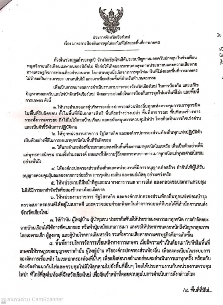 ประกาศจังหวัดเชียงใหม่ มาตรการป้องกันการจุดไฟเผาในที่โล่งและพื้นที่การเกษตร