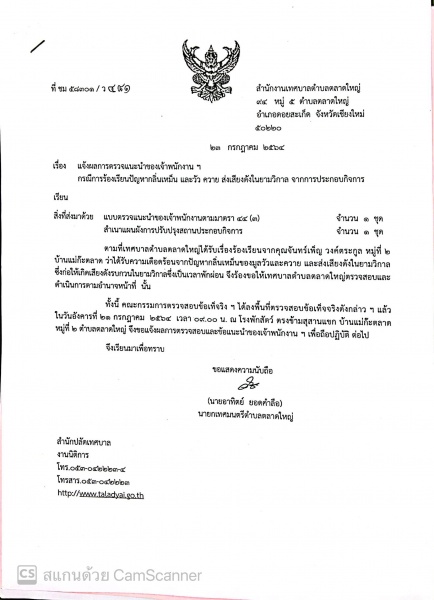 เนื่องจากทางเทศบาลได้รับแจ้งร้องเรียนปัญหากลิ่นเหม็น และวัว ควาย ส่งเสียงดังในยามวิกาล โดยร้องทุกข์ขอให้เทศบาลตำบล ตลาดใหญ่ พิจารณาให้ความช่วยเหลือตามอำนาจหน้าที่ โดยให้ความช่วยเหลือ ตามอำนาจ หน้าที่ โดยคณะกรรมการตรวจสอบข้อเท็จจริงได้ให้แนะนำของเจ้าพนักงานตามมาตรา ๔๔ (๓) แห่งพระราชบัญญัติการสาธารณสุข พ.ศ. ๒๕๓๕ ได้ตรวจสอบข้อเท็จจริงมาแล้ว จำนวน ๒ ครั้ง ตรวจสอบครั้งที่ 2 เมื่อวันที่ ๒๑ กรกฎาคม ๒๕๖๔ ให้คำแนะนำ ปรับปรุงแก้ไข ๑) ให้ก่อแนวกั้นประตูหน้าคอกวัวและประตูข้างคอกวัวสูงไม่น้อยกว่า ๒๐ เซนติเมตร ๒) ให้ก่อแนวกั้นหลังคอกวัวให้สูงจากพื้นไม่น้อยกว่า ๔๐ เซนติเมตร ๓) ให้ทำความสะอาดบริเวณคอกวัวทุกวันอย่างสม่ำเสมอ อย่างน้อย 5 ครั้ง / วัน ได้แก่ เช้า และเย็น ๔) ให้ทําฝาปิดบ่อพักน้ำเสีย และบ่อเก็บน้ำเสียให้มิดชิด ๕) ใช้ EM ในการกำจัดกลิ่นเหม็นของมูลวัว และบำบัดน้ำเสียของบ่อพักและบ่อเก็บน้ำเสีย 5) ห้ามให้น้ำล้างจากคอกวัว ที่มีมูลสัตว์ไหลออกนอกบริเวณที่พักสัตว์โดยเด็ดขาด โดยให้ดำเนินการปรับปรุง แก้ไขภายใน ๓๐ วัน ตรวจสอบครั้งที่ 2 เมื่อวันที่ ๑๙ สิงหาคม ๒๕๖๔ เจ้าของโรงพักสัตว์ ได้ดำเนินการ ดังนี้ ๑) ก่อแนวอิฐบล็อกปูนซีเมนต์บริเวณด้านหลัง แนวรั้วกำแพงตลอดโรงพักสัตว์ ๒) ทำแนวกั้นประตูหน้าคอกวัวและประตูข้างคอกวัวสูงไม่น้อยกว่า ๒๐ เซนติเมตร แล้วเสร็จ ๓) ขุดบ่อพักท่อซีเมนต์ด้านหน้าโรงพักสัตว์ จำนวน ๒ บ่อ และบริเวณด้านหลัง ๑ บ่อพร้อมฝาปิด ๔) มีการเทปูนทับรางระบายน้ำเดิมด้านหลัง ๕) บริเวณด้านหน้ามีการฝังท่อน้ำทิ้ง 9 จุด 5) บริเวณด้านหลังฝาท่อปิดยังไม่ได้ดำเนินการปรับปรุง ๗) ไม่พบสัตว์ วัว ณ จุดพักสัตว์ สาเหตุ ปรับปรุงแก้ไขไม่แล้วเสร็จ เนื่องจากมีปัญหา และอุปสรรคด้านแรงงาน ไม่มี ผู้รับจ้าง เนื่องจากสถานการณ์โรคระบาดโควิด -๑๙ คณะกรรมการฯ ได้ร่วมหารือ พูดคุย ซักถาม เจ้าของโรงพักสัตว์ และคุณจันทร์เพ็ญ วงศ์ตระกูล ได้ข้อสรุปคือ ๑) ขยายเวลาการปรับปรุงอีก ๑๕ วัน นับแต่วันตรวจสอบ (๑๙ สิงหาคม ๒๕๖๔) ๒) ให้เจ้าของโรงพักสัตว์ทำรางระบายน้ำด้านหลังเหมือนเดิมเนื่องจากไม่มีทางระบายน้ำลงสู่บ่อพัก ด้านหลัง ทั้งนี้ ท่อน้ำทิ้งบริเวณด้านหน้าไม่สามารถระบายน้ำทิ้งได้ เนื่องจากระดับท่อน้ำทิ้งสูงกว่าด้านหลัง ๓) ให้คําเนินการจัดหาฝาปิดบ่อพักด้านหลังให้มิดชิด