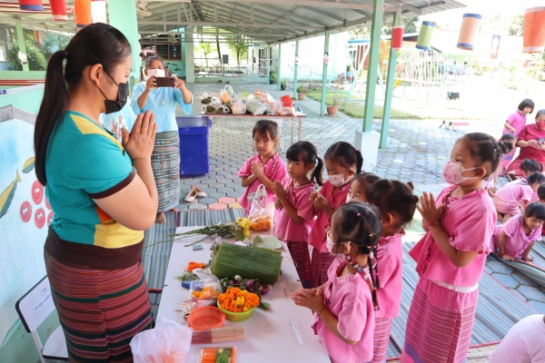 วันจันทร์ ที่ 8 พฤศจิกายน 2565 โรงเรียนอนุบาลเทศบาลตำบลตลาดใหญ่ ได้จัดทำโครงการส่งเสริมการเรียนรู้ ภูมิปัญญาท้องถิ่นไทย ตามโครงการกิจกรรมพัฒนาคุณภาพผู้เรียน โดยมี นาย อาทิตย์ ยอดคำลือ นายกเทศมนตรีตำบลตลาดใหญ่ ได้เข้าเยี่ยมชมเด็กๆ และร่วมฟ้อนรำวงลอยกระทง ต่อมาคณะครูชั้นอนุบาล 1-3 และศูนย์เด็กเล็ก พร้อมด้วยคณะครูพี่เลี้ยง ร่วมกันประดิษฐ์กระทงจากใบตอง โดยใช้วัสดุธรรมชาติที่ช่วยย่อยสลายง่าย และไม่เป็นขยะต่อแหล่งน้ำและรักษาสิ่งแวดล้อม ทั้งนี้เพื่อสอนให้เด็กเล็กอายุ 2-5 ปี ช่วยกันประดิษฐ์กระทงขึ้นเอง เพื่อเตรียมกระทงที่พร้อมจะนำไปลอยกับพ่อแม่ ซึ่งทางผู้ปกครองได้ช่วยบุตรหลานเตรียมอุปกรณ์กันมาจากบ้าน อาทิ ต้นกล้วย ใบตอง ดอกไม้สดที่หาได้ใกล้บ้านนานาชนิด ธูปเทียน ซึ่งเป็นวัตถุดิบจากธรรมชาติ เพื่อช่วยกันรักษาสิ่งแวดล้อม และให้เด็กนักเรียนได้เรียนรู้ประวัติความเป็นมาถึงความสำคัญของประเพณีวันลอยกระทงของไทยที่ควรรักษาไว้ พร้อมร่วมกันอนุรักษ์ขนบธรรมเนียมประเพณีที่ดีงามไว้สืบต่อให้ลูกหลานรุ่นหลังได้เผยแพร่สืบสานวัฒนธรรมประเพณีที่ดีงามนี้สืบไป