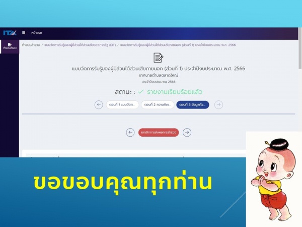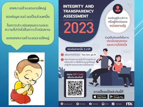เทศบาลตำบลตลาดใหญ่ ขอเชิญชวนทุกท่านร่วมประเมิน การประเมินคุณธรรมและความโปร่งใสในการดำเนินงานของหน่วยงานภาครัฐ Integrity and Transparency Assessment ประจำปีงบประมาณ พ.ศ. 2566 (EIT)