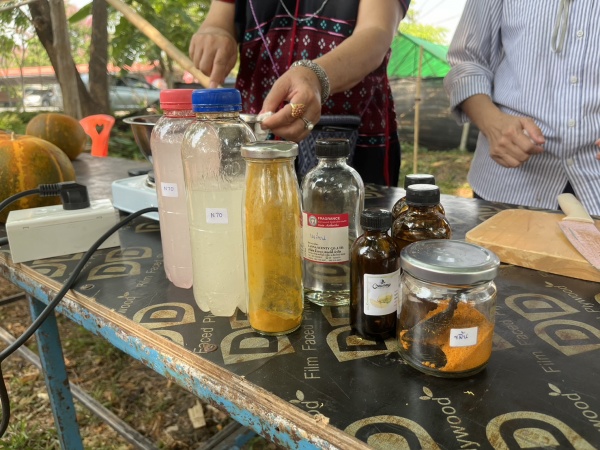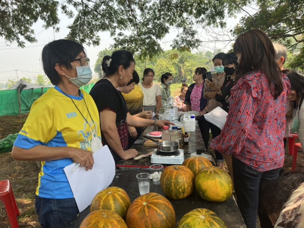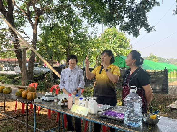 ฝึกอบรมการทำเซรั่มบำรุงผิวและสบู่จากแตงไทย โครงการส่งเสริมอาชีพกลุ่มพัฒนาสตรีแม่บ้านตำบลตลาดใหญ่