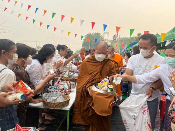งานพิธีทำบุญตักบาตรข้าวสารอาหารแห้ง เนื่องในการจัดงานวันแตงไทยและของดีตำบลตลาดใหญ่