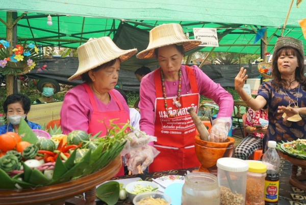 การประกวดส้มตำลีลา ประกวดลาบ และประกวดไก่พื้นเมือง ในวันงานแตงไทยและของดีตำบลตลาดใหญ่
