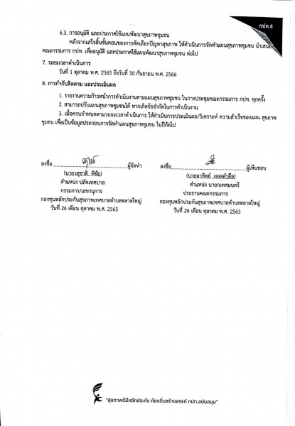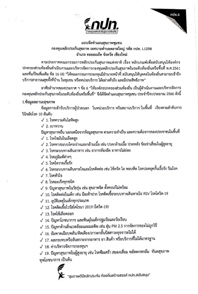 ประกาศใช้แผนสุขภาพชุมชนกองทุนหลักประกันสุขภาพท้องถิ่น เทศบาลตำบลตลาดใหญ่ ประจำปีงบประมาณ 2566