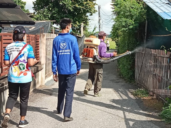 นายกฯ ได้มอบหมายให้เจ้าหน้าที่เทศบาลลงพื้นที่ฉีดพ่นหมอกควันกำจัดยุงลายโดยเร่งด่วน และแจกทรายอะเบทเพื่อกำจัดลูกน้ำยุงลาย หมู่ที่ 5 บ้านแม่จ้องเหนือ