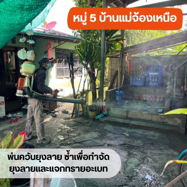 นายกฯ ได้มอบหมายให้เจ้าหน้าที่เทศบาลลงพื้นที่ฉีดพ่นหมอกควันกำจัดยุงลาย ครั้งที่ 2 เพื่อกำจัดยุงลาย หมู่ที่ 5 บ้านแม่จ้องเหนือ