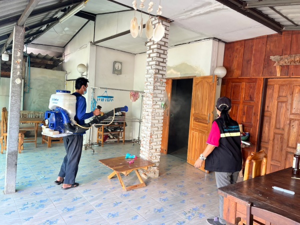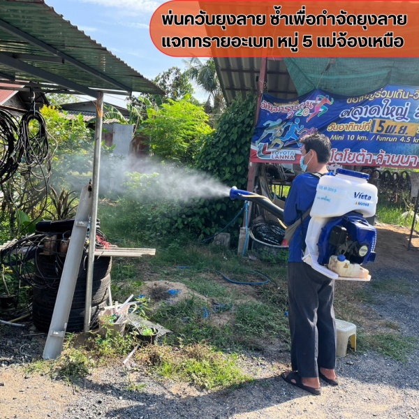 นายกฯ ได้มอบหมายให้เจ้าหน้าที่เทศบาลลงพื้นที่ฉีดพ่นหมอกควันกำจัดยุงลาย ครั้งที่ 3 เพื่อกำจัดยุงลาย หมู่ที่ 5 บ้านแม่จ้องเหนือ